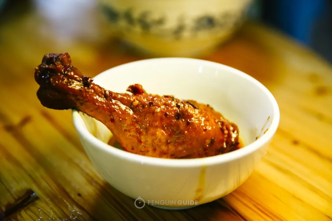 对了,它家的卤鸡腿也是招牌。卤得油光发亮,整个皮子都浸润的深红的卤汁,一咬就酥开了。