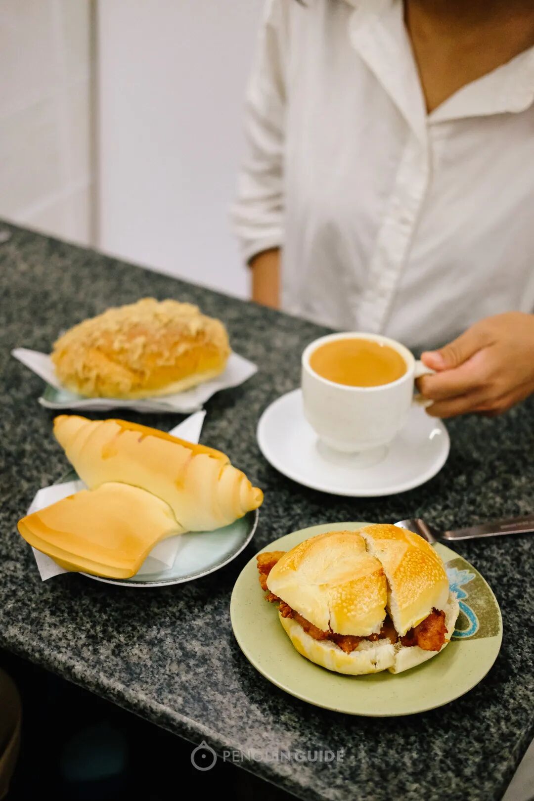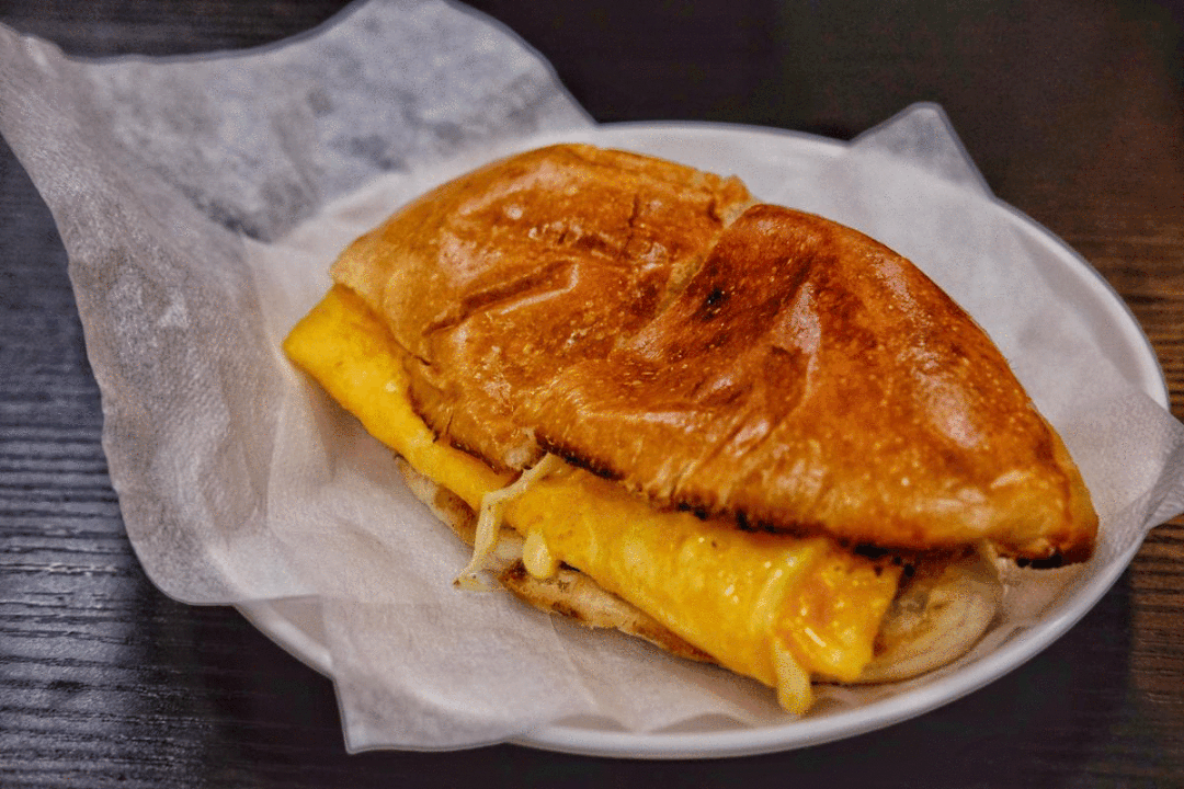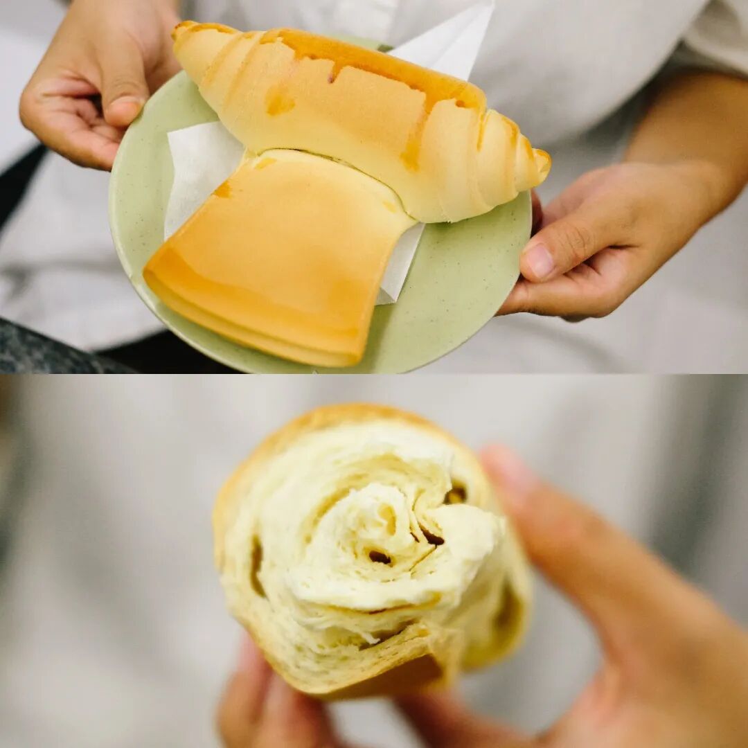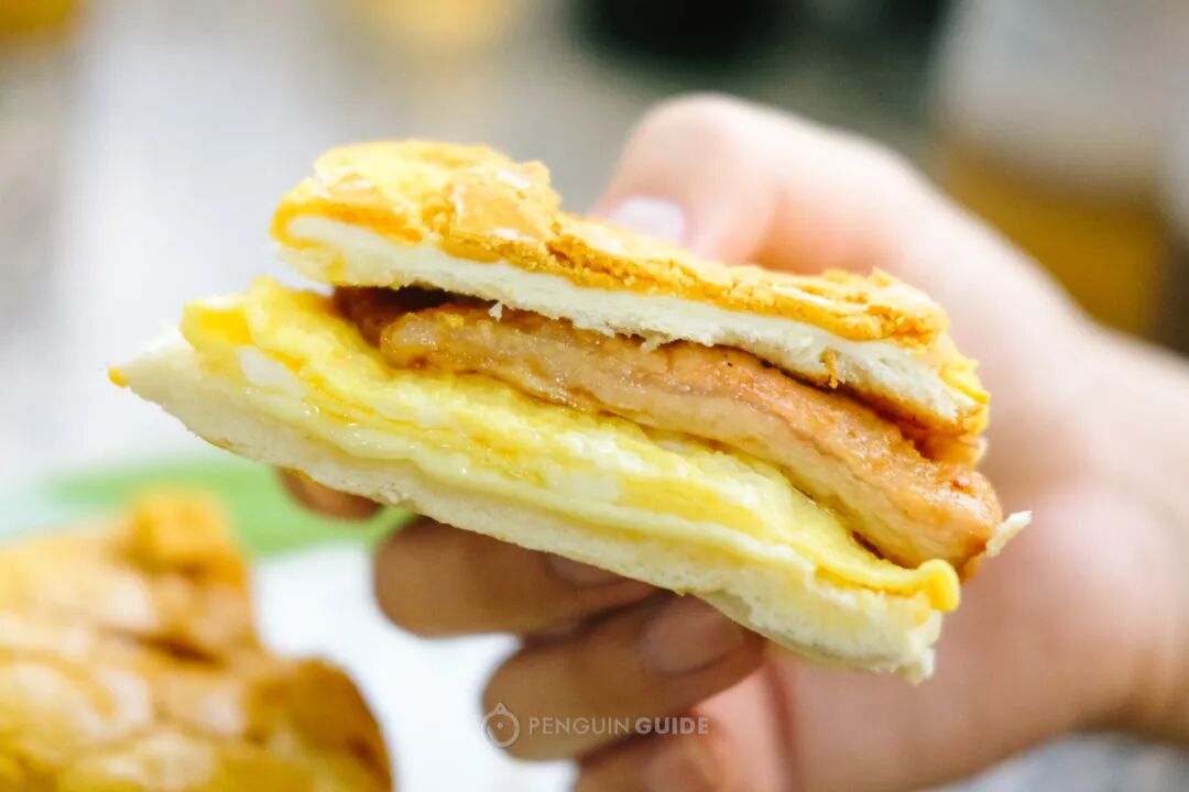 面包,是新鲜出炉的菠萝包,热乎松软;猪扒即点即炸,饱满而多汁;最后还加了一层蛋浆芝士……能不好吃吗?!