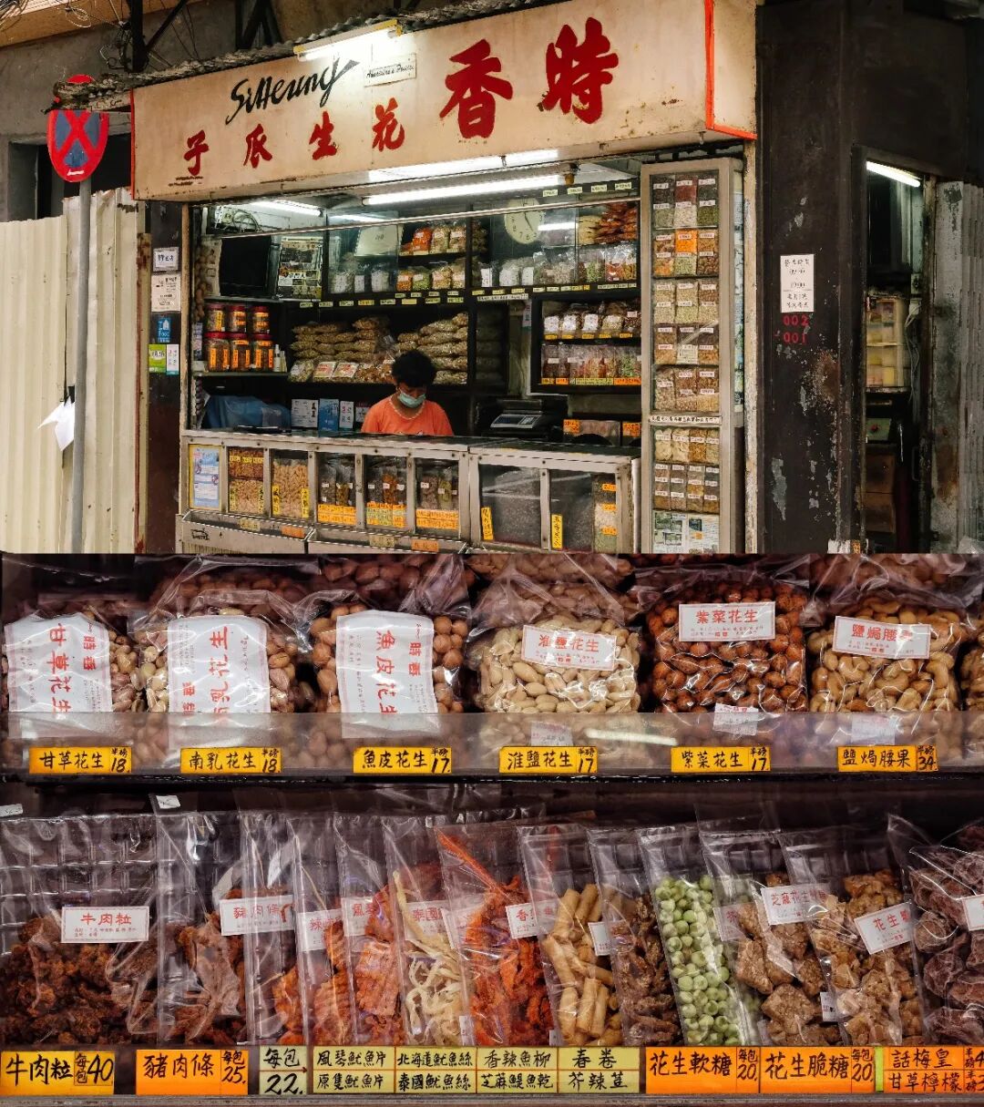零食区,推荐时香花生瓜子,是澳门仅存的手工花生,味道很有趣,从基本的鱼皮、淮盐、南乳花生,到少见的甘草花生、紫菜花生,更有最有澳门特色的虾籽花生。
