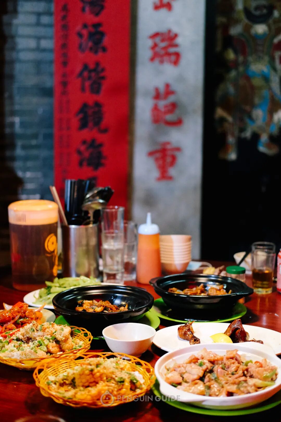穿过暗巷,在人声喧哗之处坐下,背出名厨亲授的菜名:沙姜猪脷、艇仔虾、炸大肠,如果还有活鱼,一定要点。