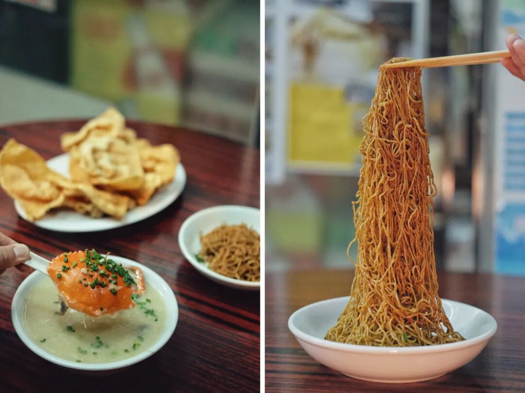 如果你特别钟爱水蟹粥,私心再推荐另一间六记粥面,开业60多年都能守住出品的水平,以大骨熬煮的粥底再加入整蟹,风格更加醇厚。
