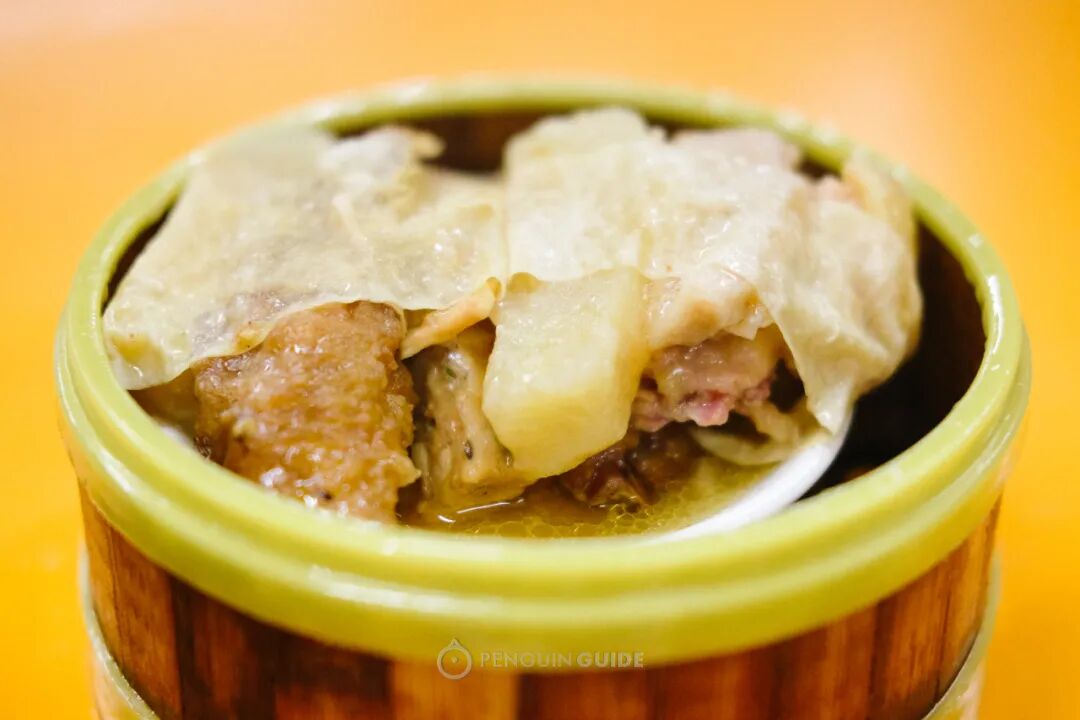 看看这四宝滑鸡扎,组合了鸡爪、金钱肚、排骨、土豆四种食材,都需要分别处理,合力将味道推向巅峰。因为太繁琐,如今已经没什么茶楼会做了。