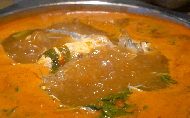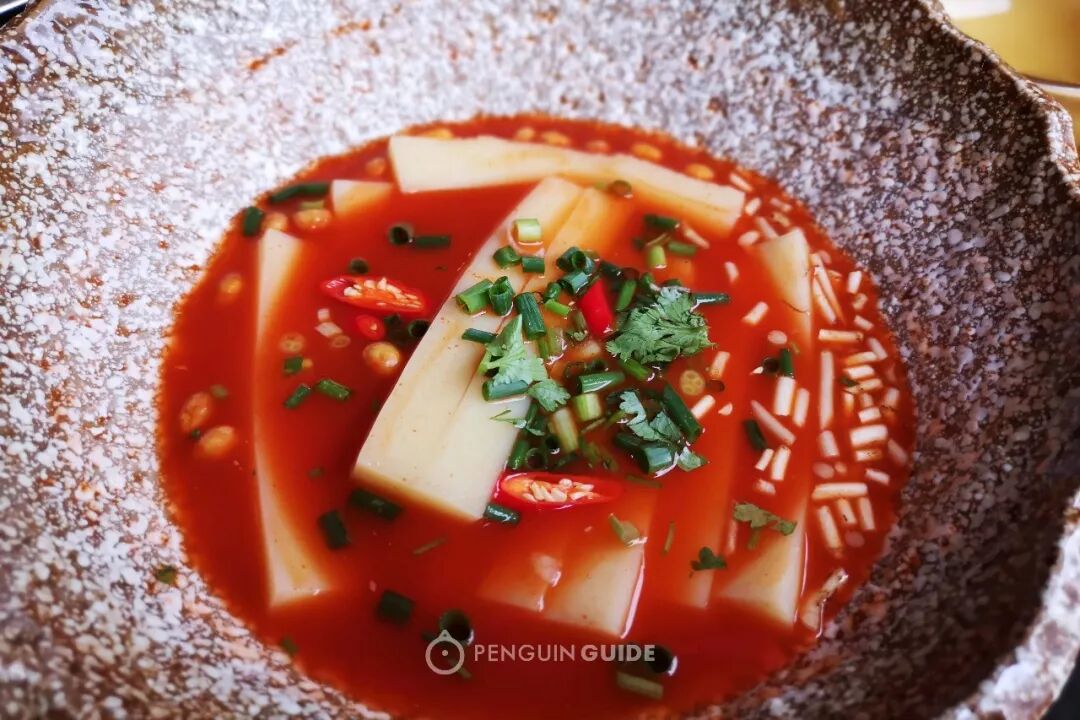 再与毛辣果一起二次发酵成红酸汤,比外地的贵州餐厅的风味更直白猛烈。鱼肉紧实而不散,带着一丝淡淡的木姜子油香气。