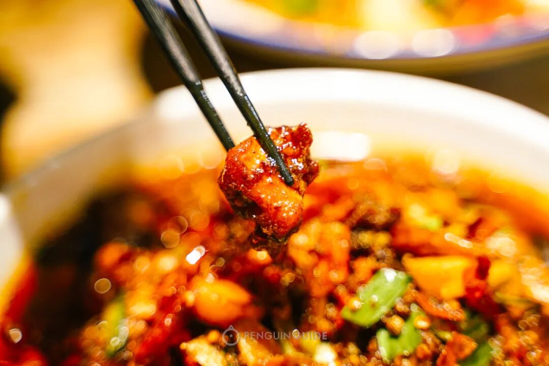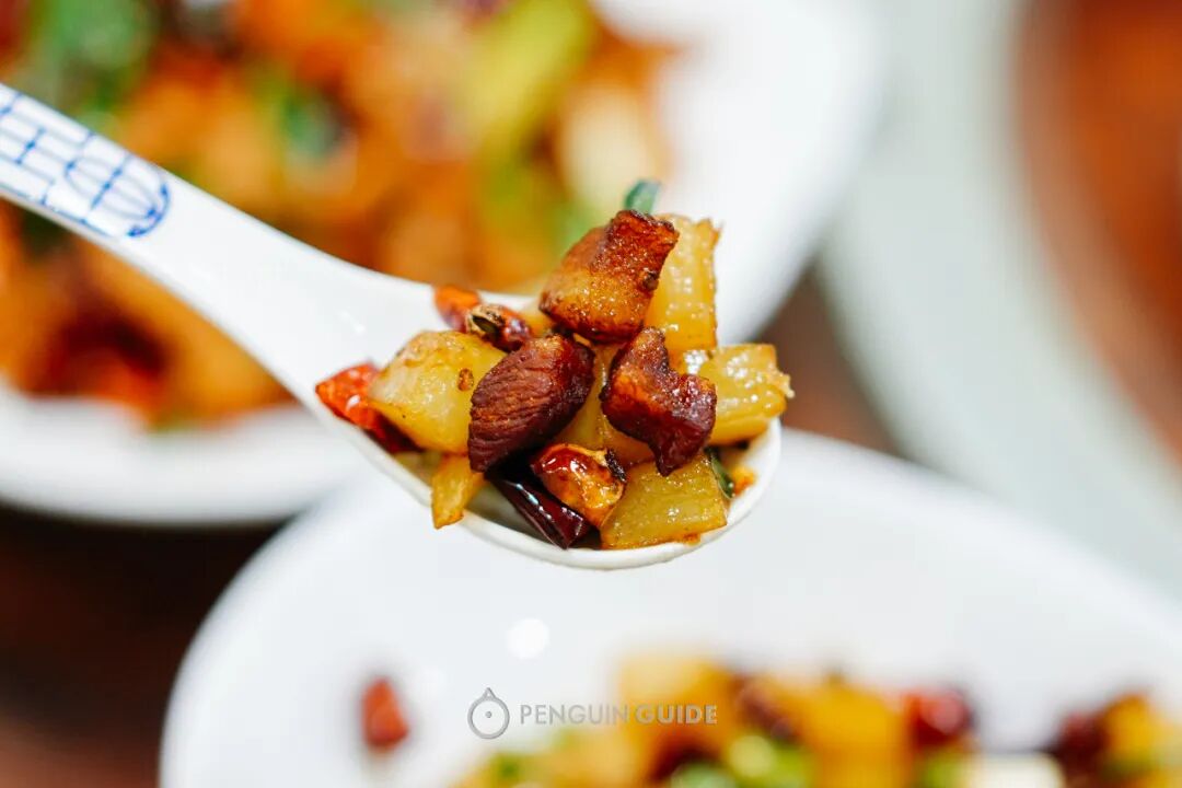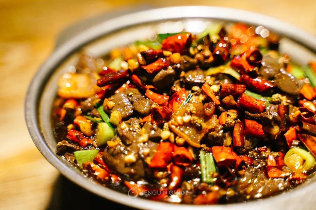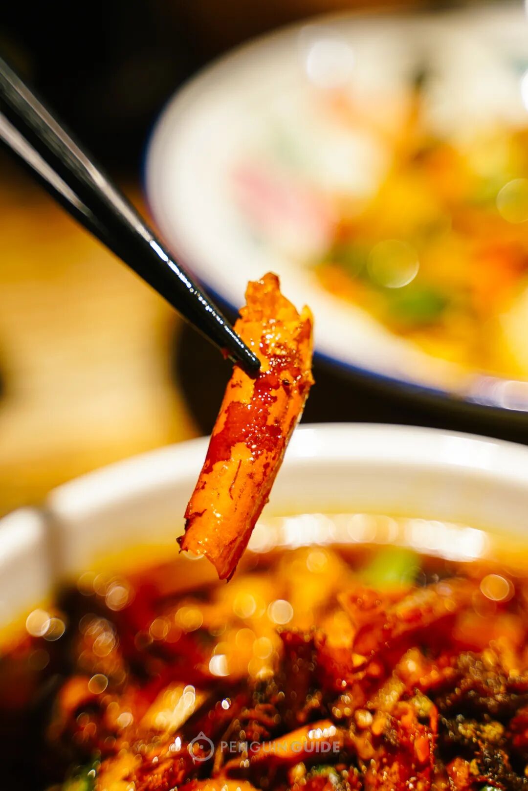 川渝都有的辣子鸡,在这里用糍粑辣椒替换了干辣椒,吃起来不是印象中甜辣干爽的出品,反而汤汁浓稠,炒出了近似于坚果的浓郁脂香。