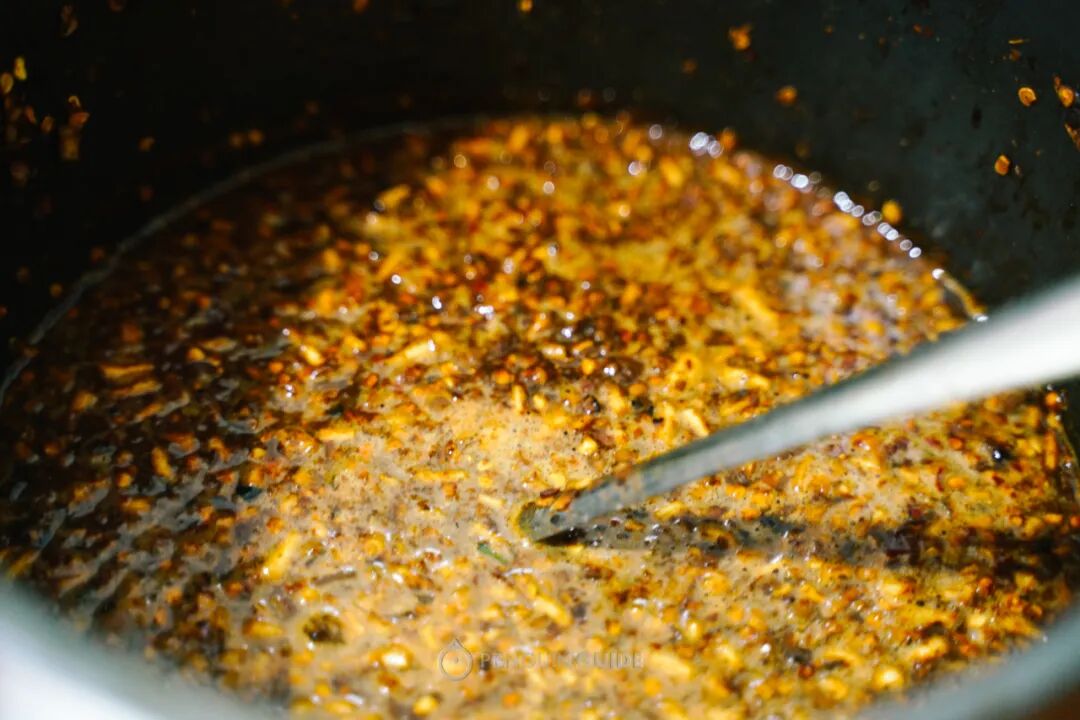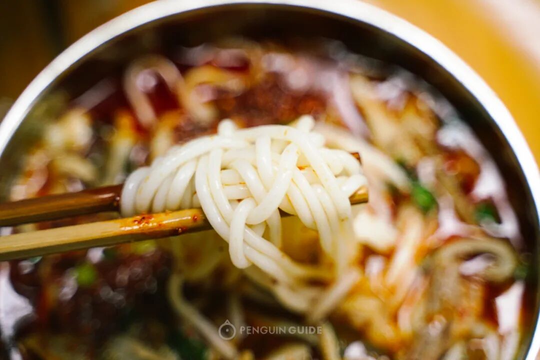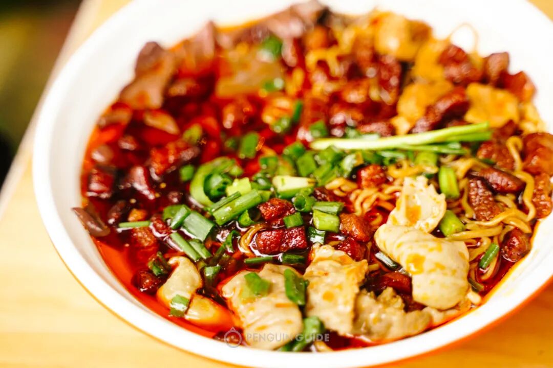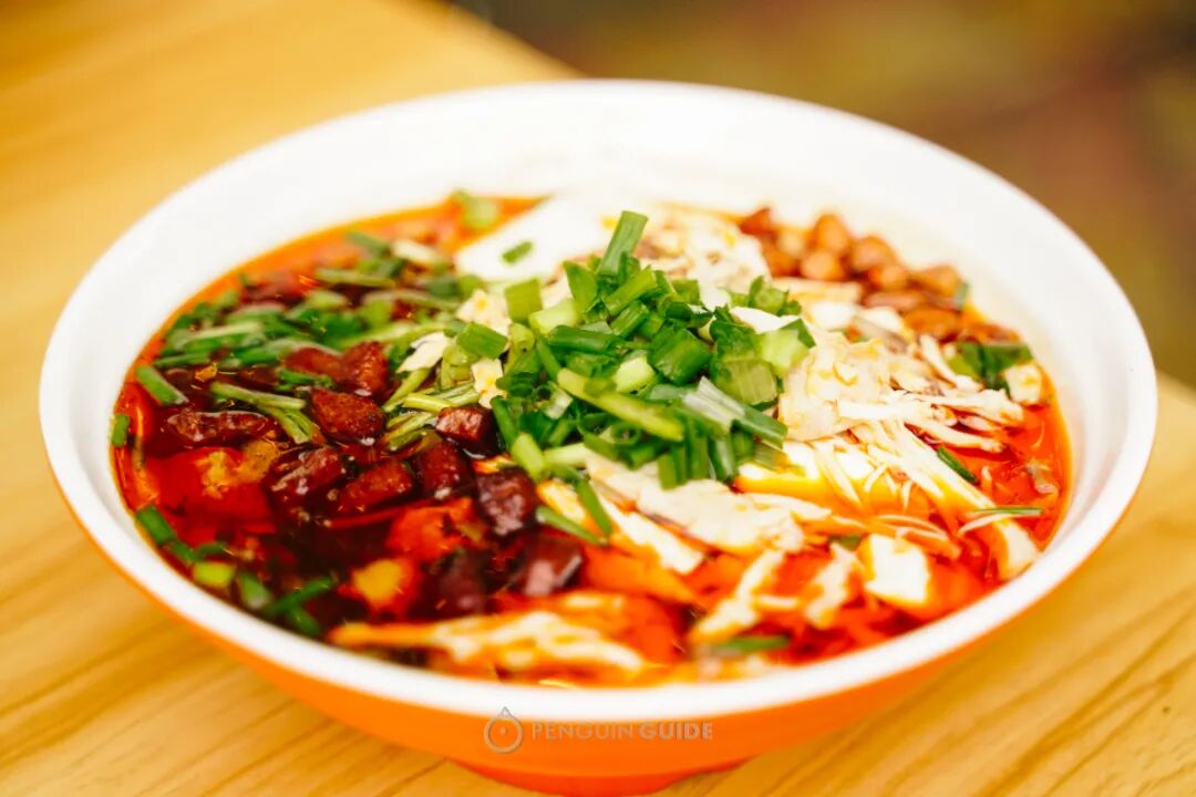 最重要的灵魂红油,是最后才要泼上去的。最传统的做法,会用大肠壁里的肥油熬,味道生猛到上头!