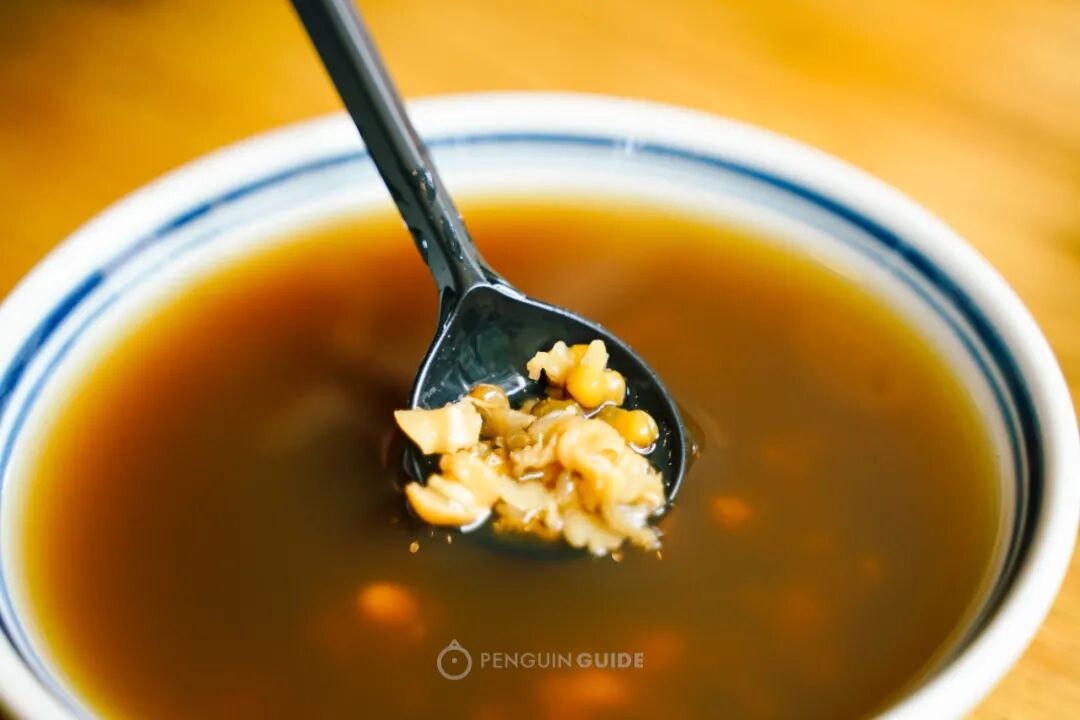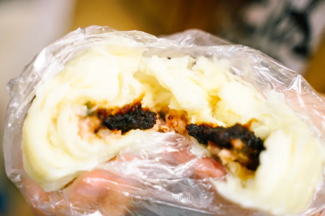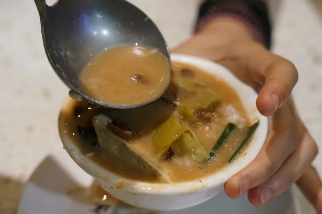 外皮粗糙脆韧,趁热咔呲咬开,内里却像麻薯面包一样,带着横纵的稀疏孔洞……吸汤汁一绝!