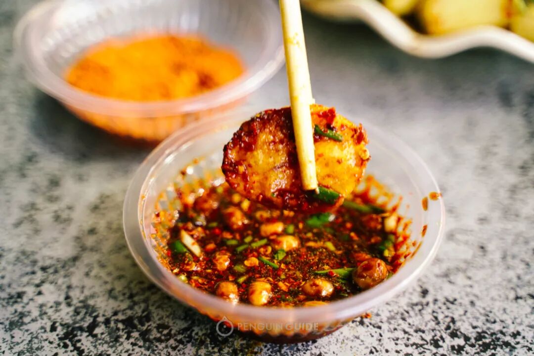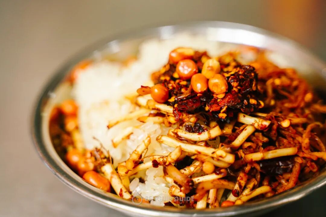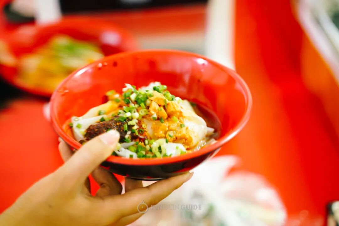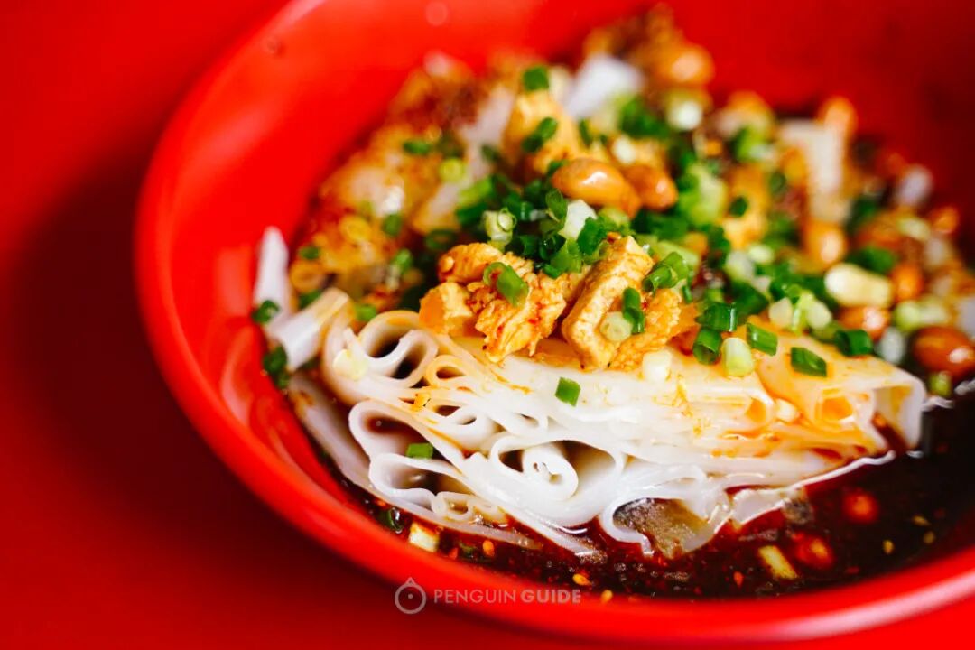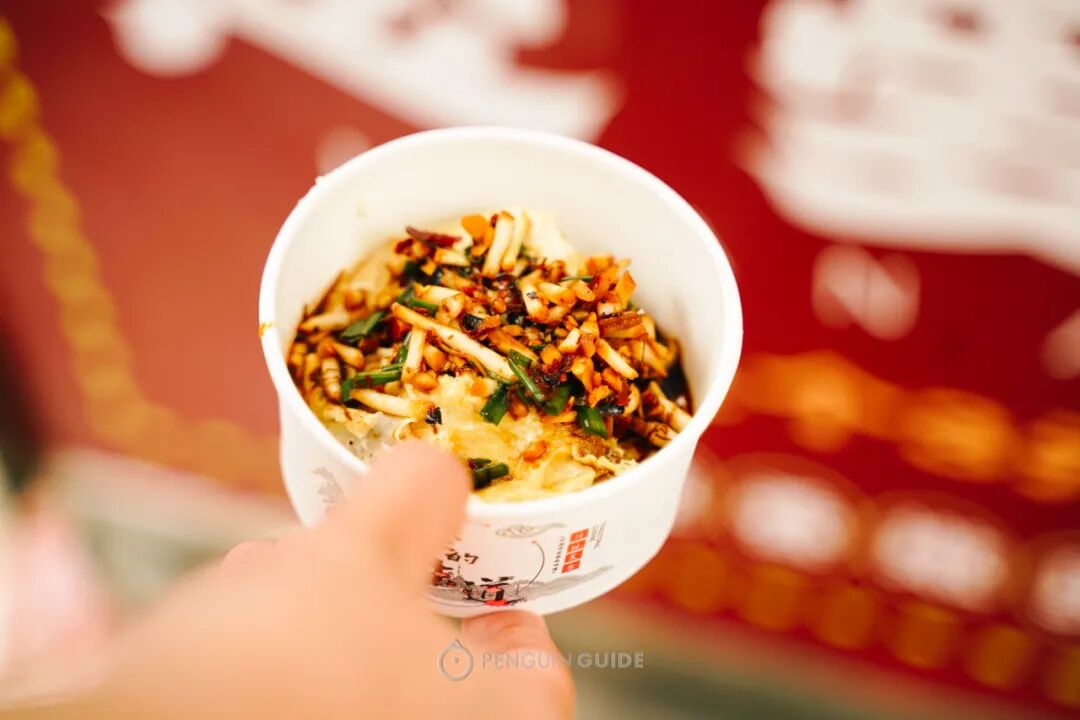 本地人喜欢这用数十种调料拌成素粉,最后在顶部盖一颗炸透的荷包蛋。拨开蛋白,明媚的蛋黄液淌在粉条,仿佛又重新温柔了起来……