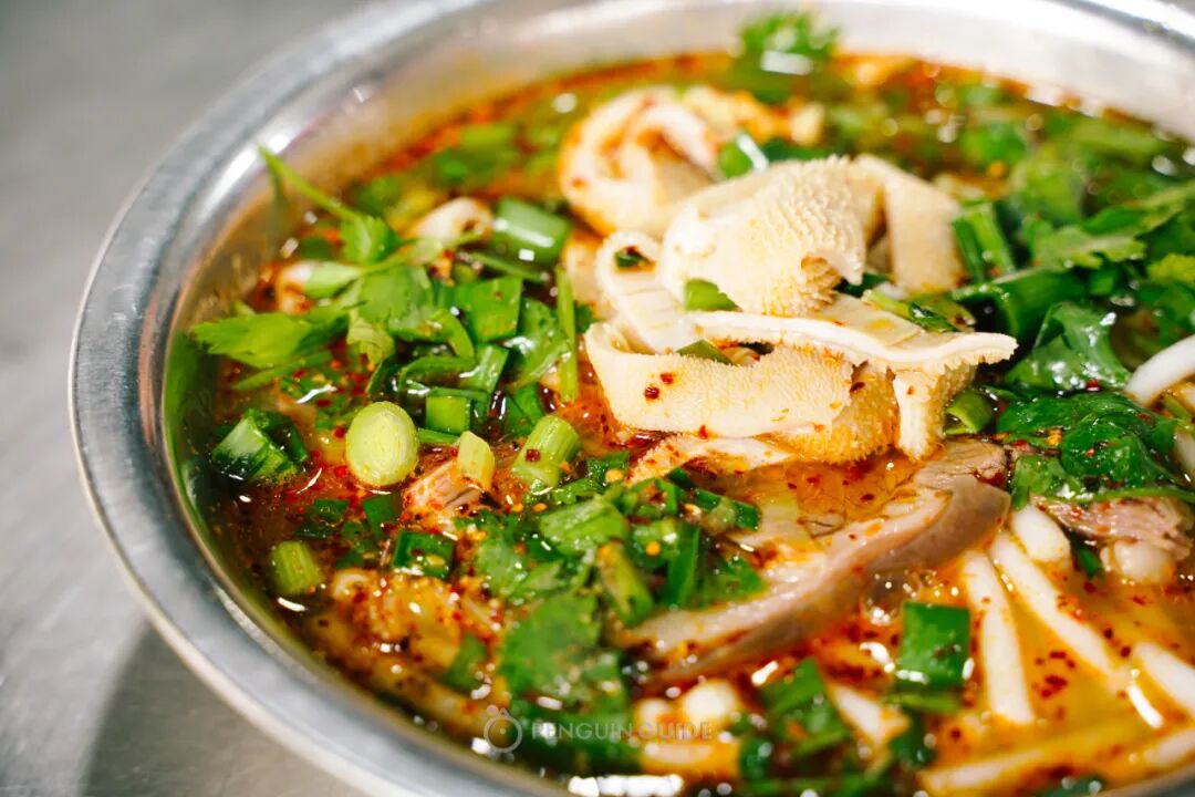 它可以粗如竹筷,却依旧身段柔美:比如此行吃到最喜欢的一碗,是这碗金沙羊肉粉。又糯又滑,一嗦就像是活了一样,自己钻进了喉咙里!