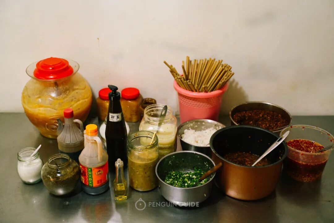 蘸水看似简单,不过是小料的组合变化,但门道极深,掌握了独家的蘸水功夫,就能开店: