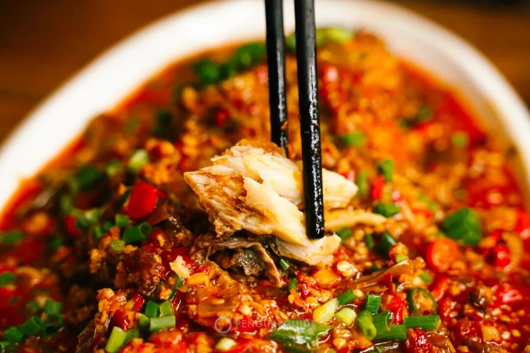 在炸好的鱼上铺满满一层,看着火辣,吃起来却是甜丝丝的酸辣口。沿海人民也能欣然接受,是酸食里很温柔的一位……