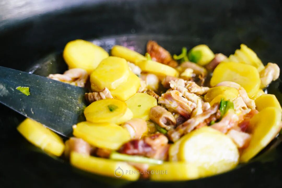 贵阳的洋芋可好了,淀粉含量高,口感糯沙绵软。切成和脆哨同样大小的丁,一糯一脆,是两种口感的碰撞!