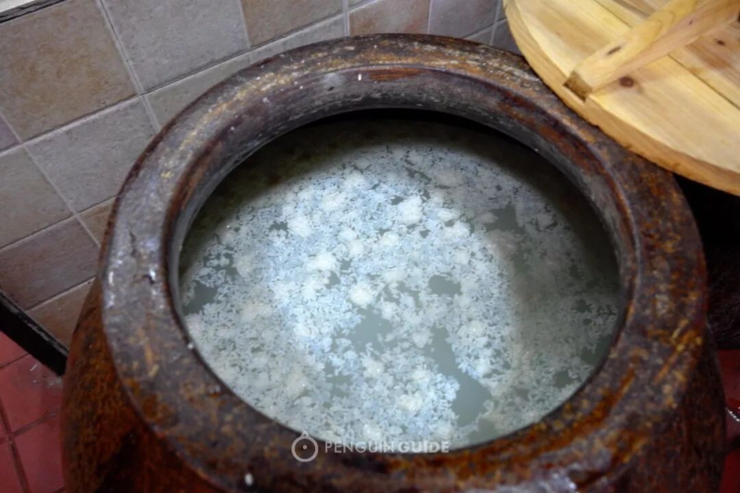 除了红酸之外,当地还有一种更小众,却是最传统的酸汤做法,是将米汤装进坛子里发酵。称为白酸。