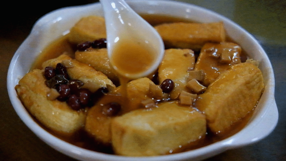 细问下得知是加入了蛋白,增加了嫩滑与弹性,也更好地吸附汁酱香气,微微蛋香衬托豆香更有层次,入口是duang-duang的愉悦感。