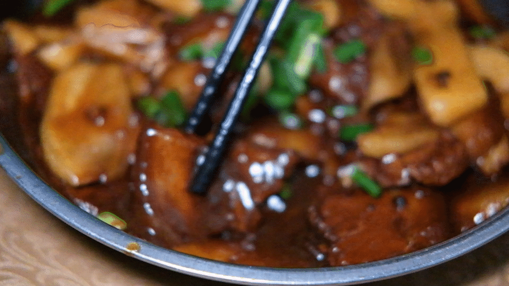 带着清野香气的禾杆草,与肥五花共焖,令狂恣的肥肉带着清新草香尾调,赤红的酱汁已渗入心,吃得人醺醺然。