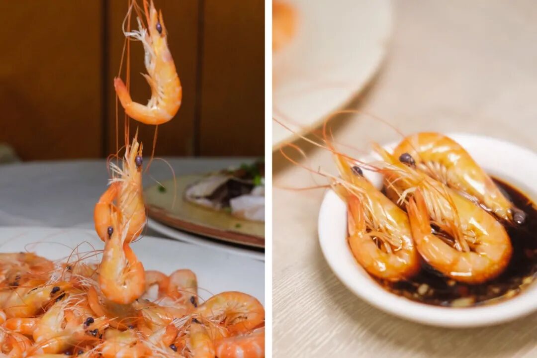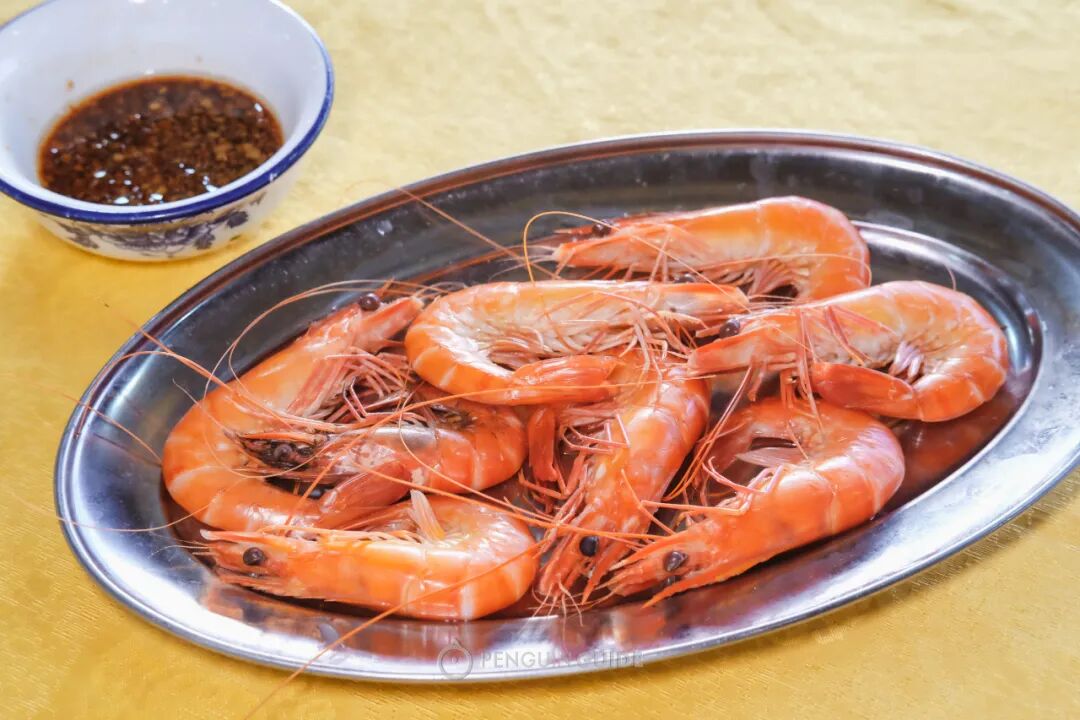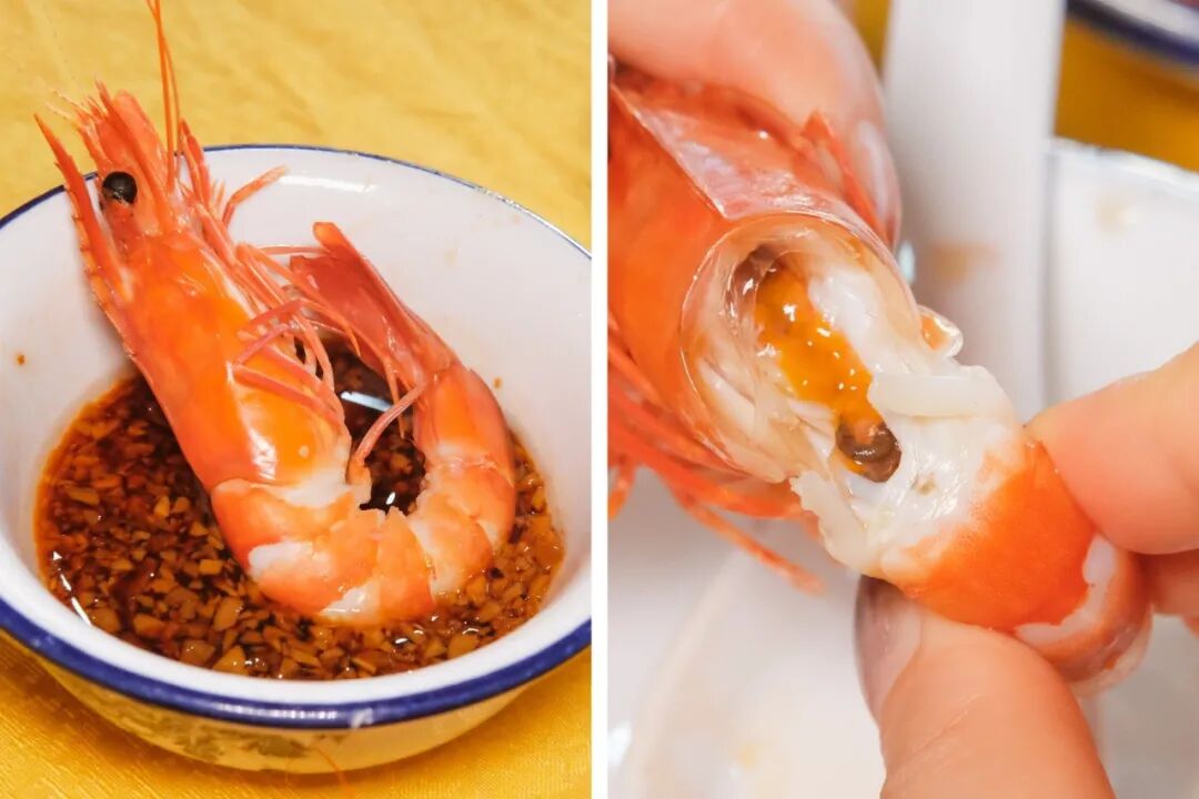 老板特别点明,虾头也能吃!打开是饱满橘黄的虾膏,吃起来甚至带点蟹的香味,是本地品种所独有的。