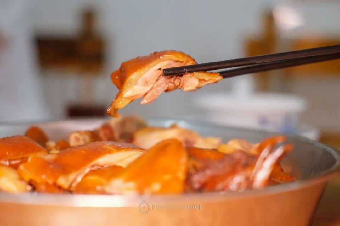 炆鹅,也是番禺农家菜中的名馔,妙处在本地农家自养的土鹅。