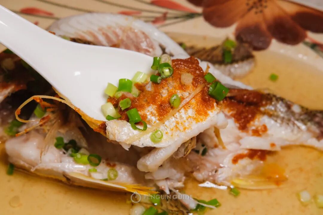 吃这样的鱼,用筷子戳戳戳是体会不到快感的,必须出动匙羹,连肉带汁一并勺起,一口堵上嘴,满腔汁肉交融的绝美之味。