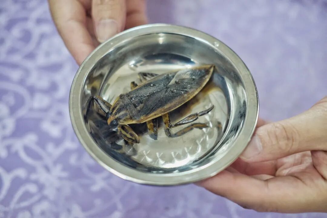 来这里,能认识一种钟村的特色食材——桂花蝉。这是生长于水泽稻田的蟓虫,外形似蝉,但和蝉其实没什么关系。