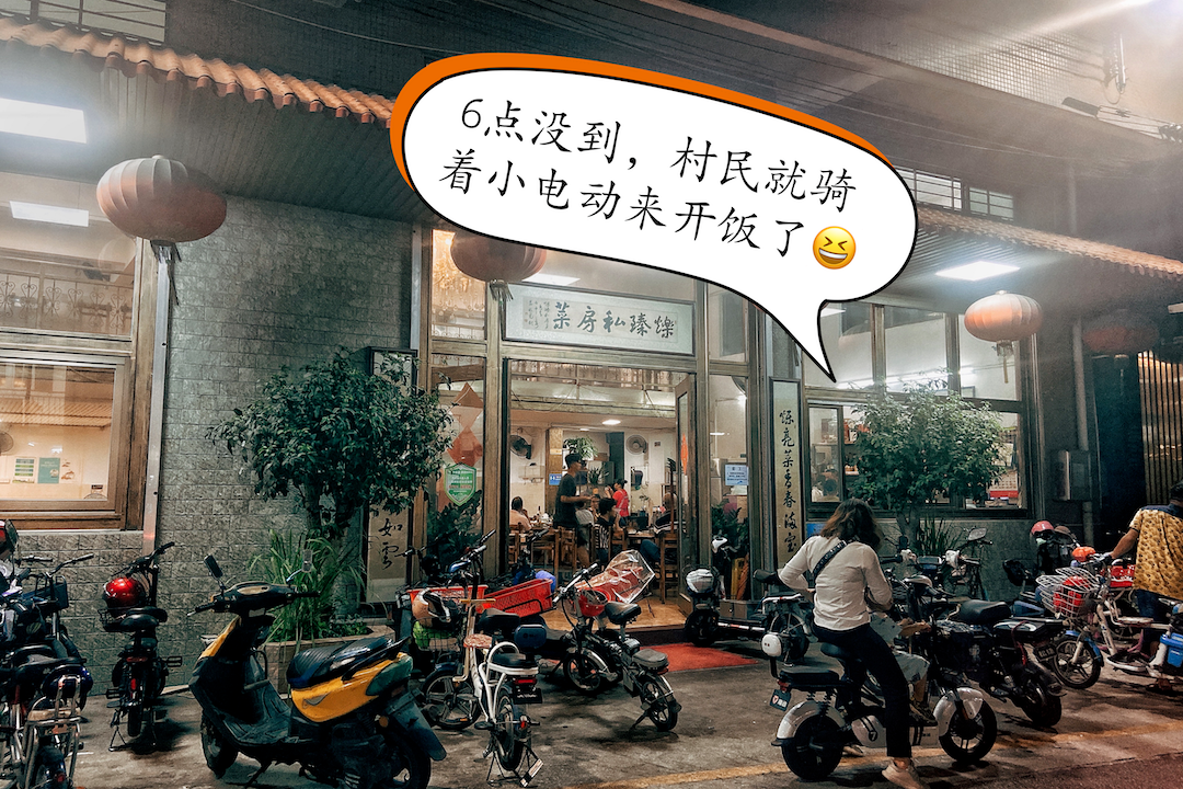 我们挖到的这家农家菜,地点隐蔽,但在当地村民间已是饭堂般的存在,一到饭点,门前就停满了突突突地开来的小电动车。