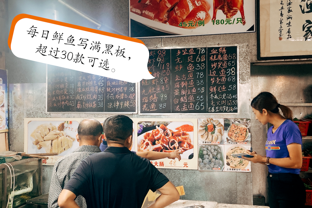 尖货呢,指的是店里每日都有特价的“钓鱼”,是在店附近的水域钓的野生鱼。