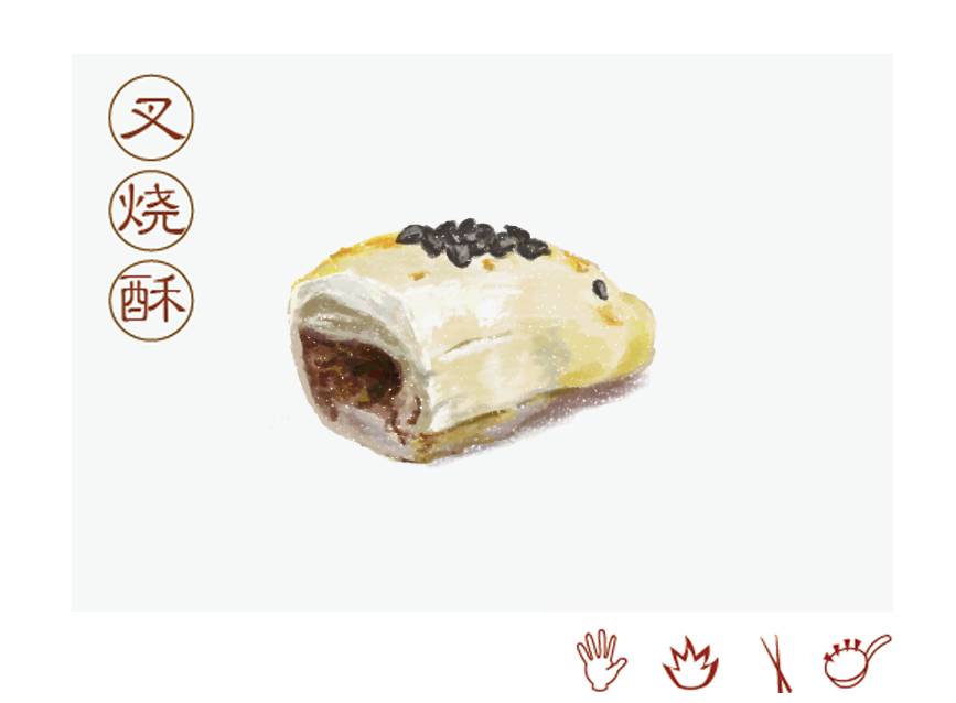 酥皮和叉烧爱好者怎么能错过:烤热了出锅一刻的酥香混着叉烧甜香,卷着外皮烤得金黄油亮露出油脂甜香的叉烧内陷。起酥要有足够的层次,叉烧也要肥瘦合适。
