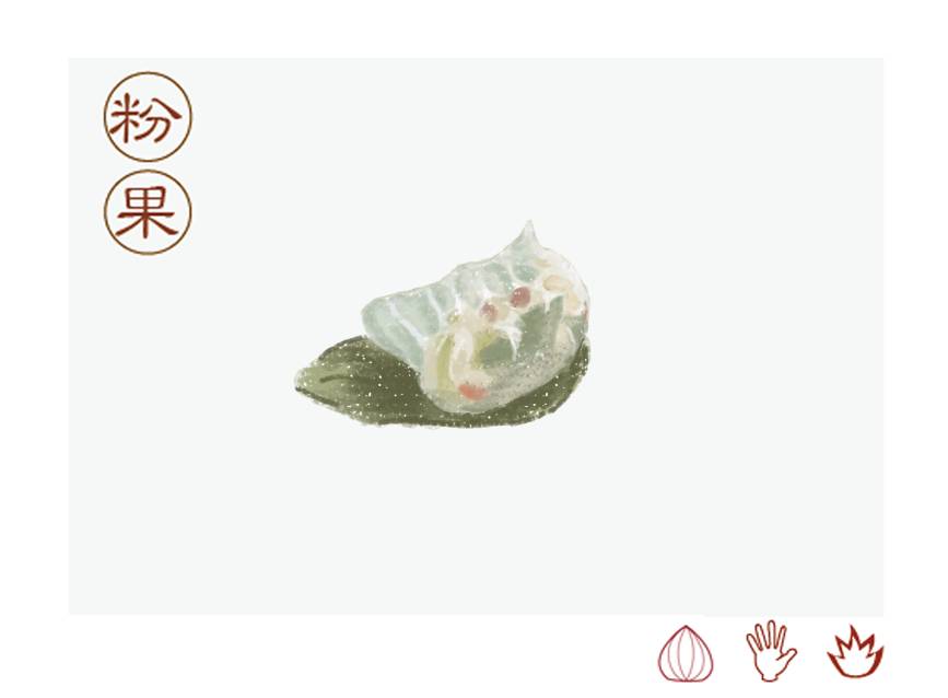 “排排坐,食粉果…”,粉果的受欢迎程度已经进了儿歌。玲珑剔透的澄面皮儿包着口感各异的馅料:猪肉、冬菇、笋丝、沙葛、芫荽和炸花生,切丁一定要小而有型,扒拉开来粒粒单独都有食材本身纯正不杂的味道,一起入口又是香气协调、层次清鲜丰富。我觉得粉果是考量店家水平的,说粉果不好吃的,一定要去一趟广州。