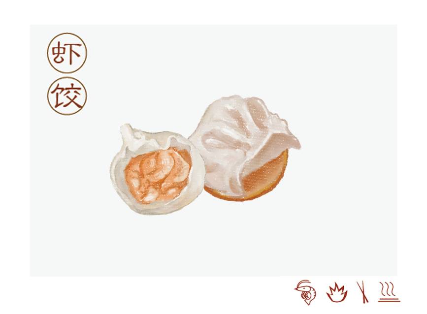 说到同样的蒸饺类,还有蟹黄灌汤饺、笋尖鲜虾饺、罗汉斋饺…如果有灌汤通常是馅料中拌入了肉皮冻,化成了汤汁的鲜美。掐褶拗成弯梳形,皮韧肉鲜。