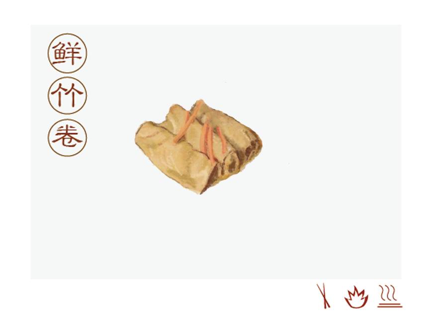 腐皮卷着肉丁、香菇、萝卜粒、笋丝、木耳等鲜香之物,浇蚝油蒸软熟。醇厚浓缩的豆香和鲜味混合。