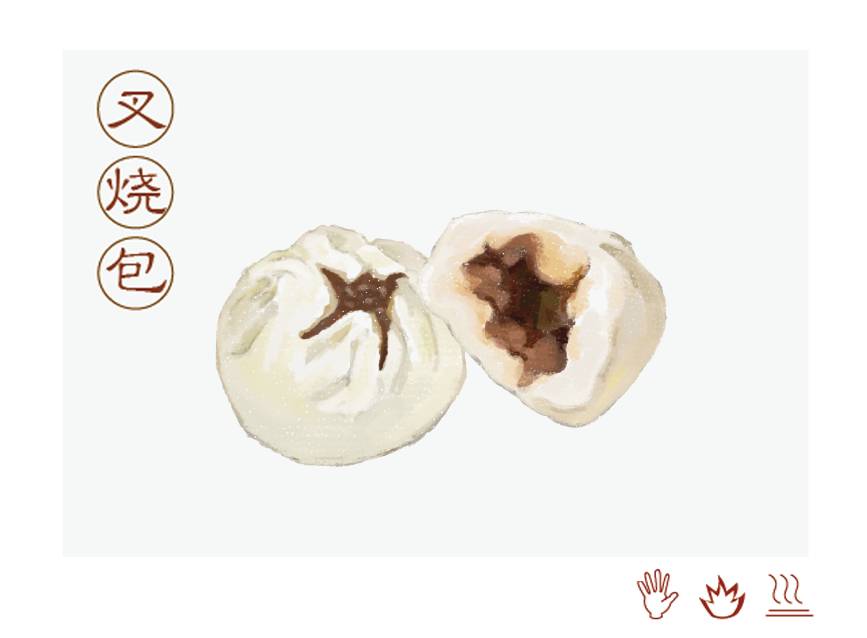 小块、肥瘦适中的叉烧做馅,蒸到顶部裂开三叉口而肉香四溢,叉烧软嫩饱满不粘牙。如果叉烧换成鸡肉就是歪果仁们都知道的鸡包仔(Chicken Buns/Gai Bao Jai),但是感觉鸡包仔好像真的在国外比较收欢迎,国内茶楼还真是少见。