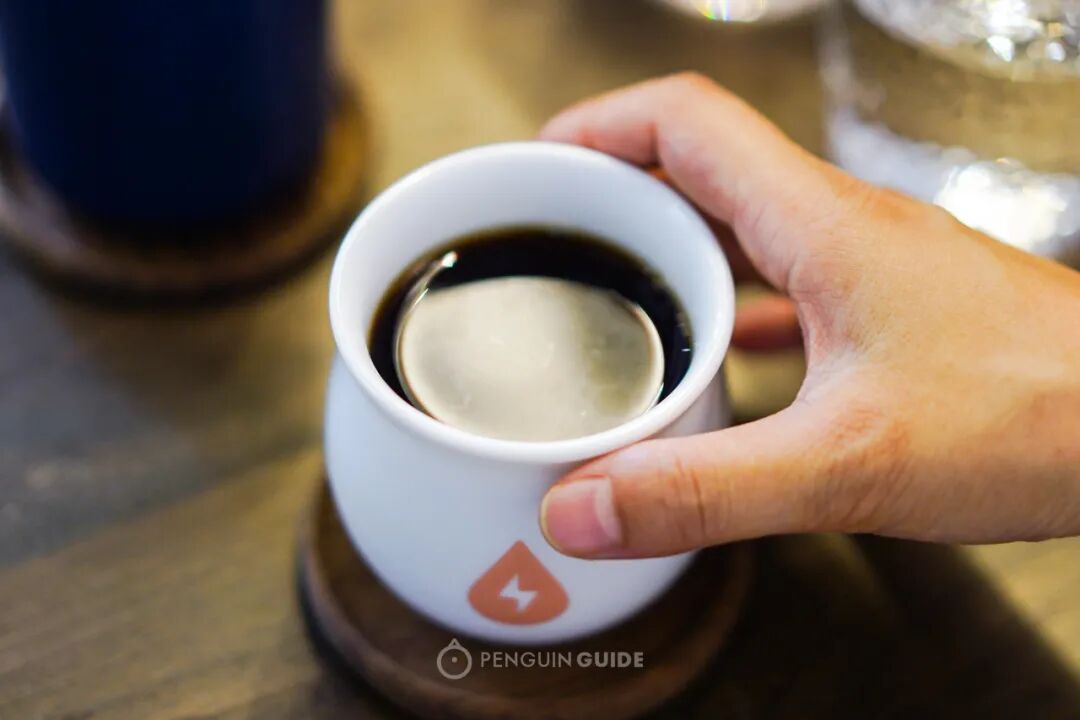 冰块很讲究,用特殊机器冻出的实心球形冰,晶莹剔透,没有一丝气泡和裂纹,融化速度慢,即使一时喝不完也不会冲淡咖啡。