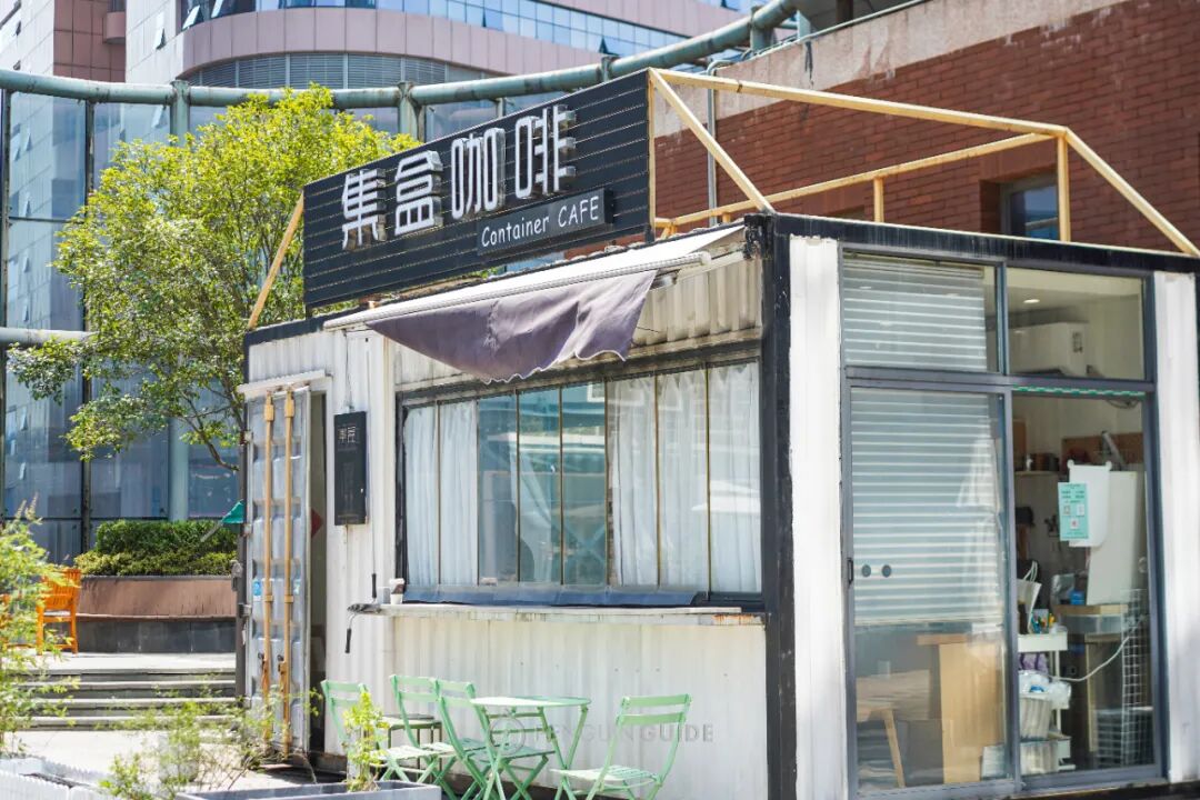 与其说它是一家店,不如说是一个白色咖啡集装箱,坐落在商场顶楼,服务周边白领居多。