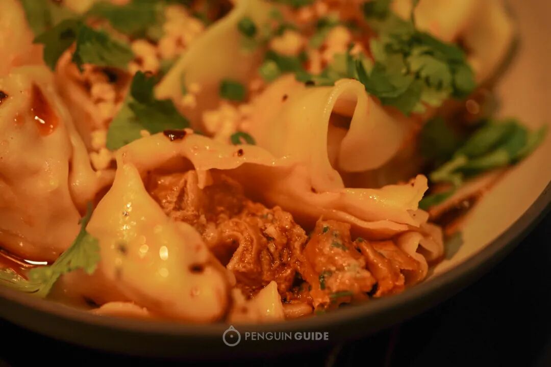 你敢信?这个抄手是用火锅底料拌的,有重庆朋友专程来过,说一吃就知道是自己炒的锅底——是八角、桂皮、茴香等天然大料炒出的混合香气,没有香精那么俗艳杂乱。