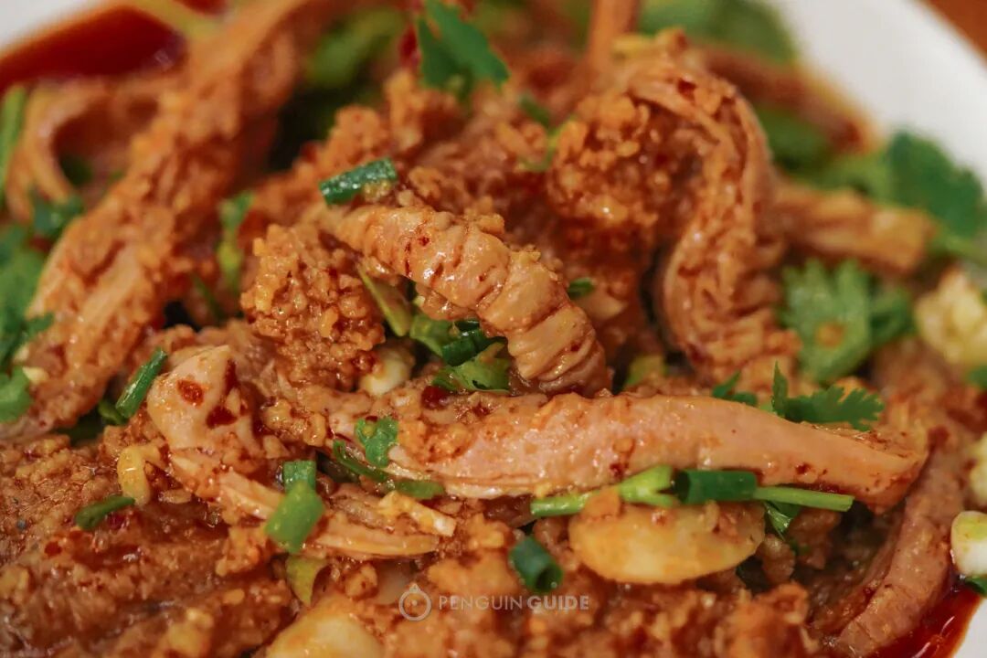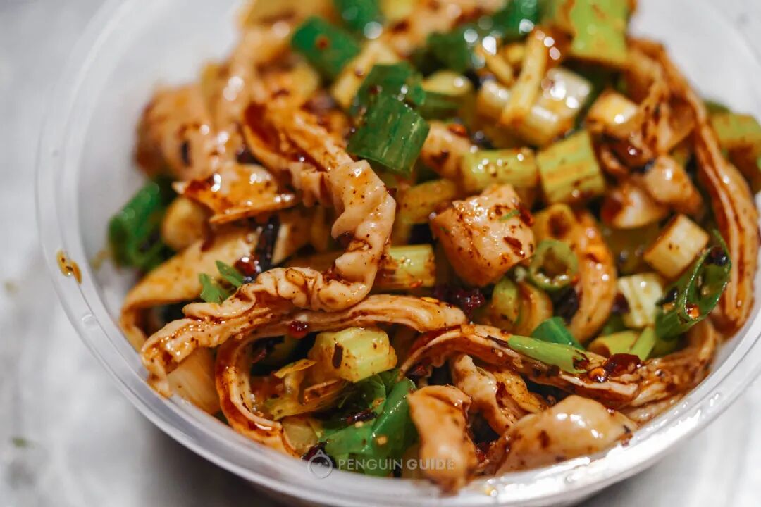 凉拌用的是肠头部位,口感非常标致:弹中带点脆——由于肠头肥厚,很多店火候不到位,徒有弹性,但硬邦邦嚼不动。