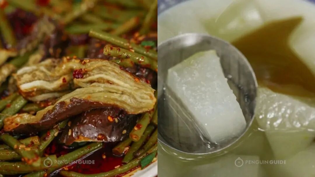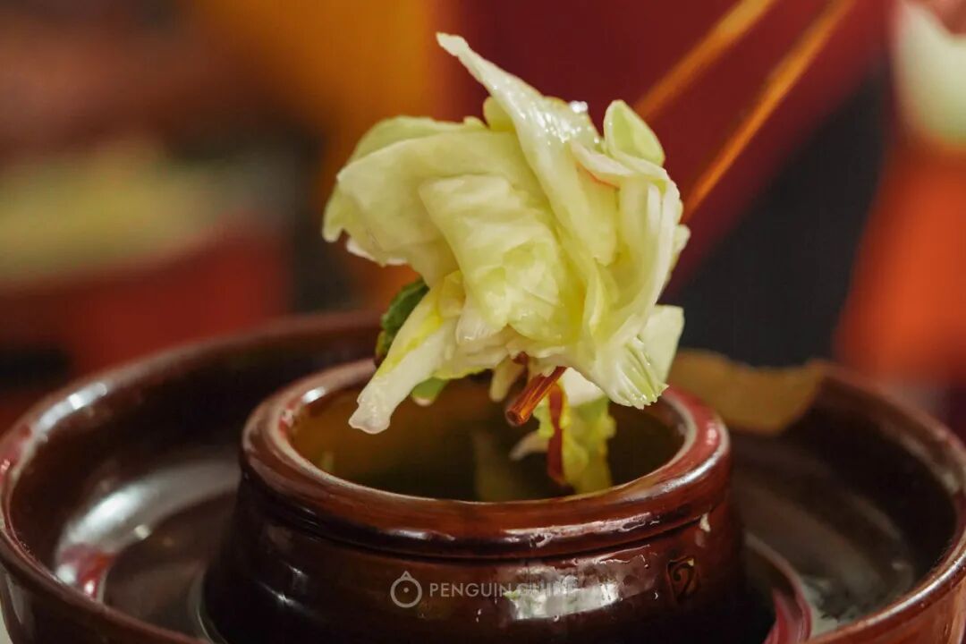 吃了这么多荤菜,来吃点地道的成都“洗澡泡菜”解解腻。洗澡泡菜,意为只泡一到两晚,微酸不咸,还保留了包菜本身的清甜,很爽口。