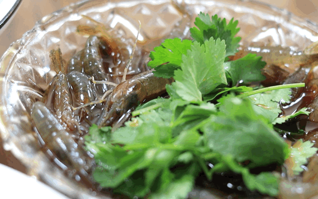 绍兴是座被水包围的城市,河虾也是一顶一新鲜。只消用酒迅速醉到虾虾将熟未熟,肉质松酥,还能吃到活虾的韧劲,就能上桌。