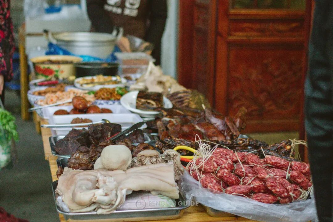 正值冬季腊味季,街边挂满了油亮亮的腊肠腊肉鳗鲞,浑厚酱香肉香纵情四溢,走一路流了一路口水……