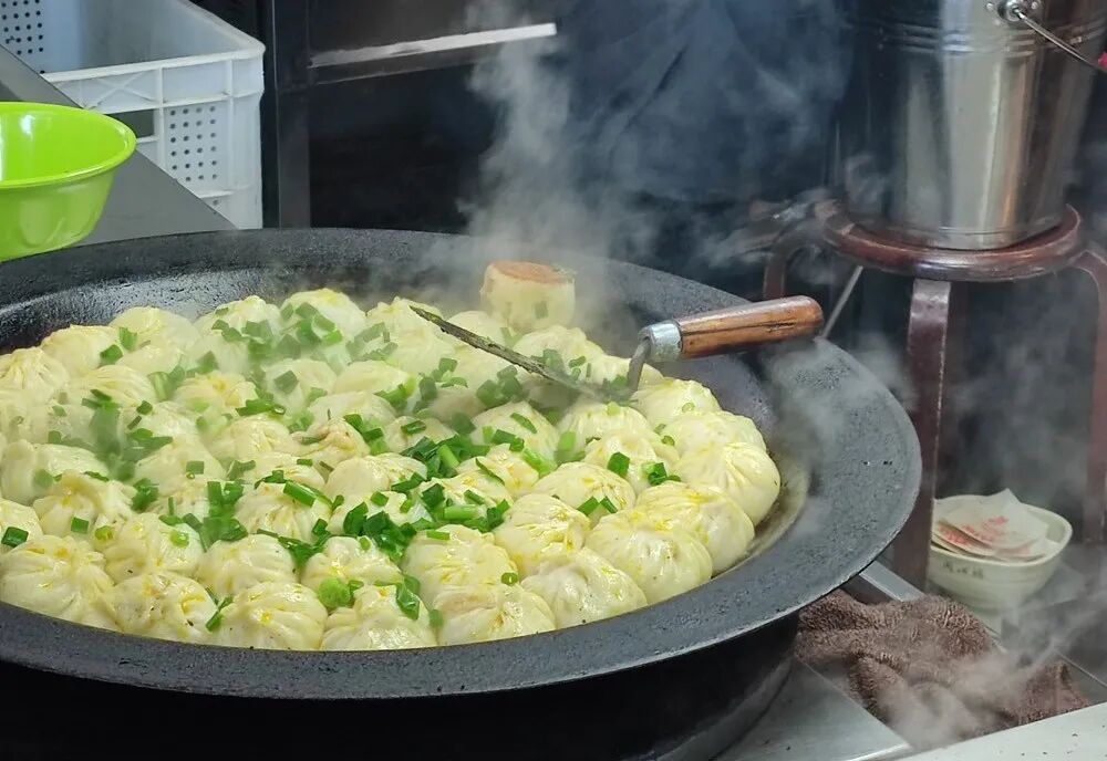 务必去当地的老字号,试试看本地的生煎。面皮是全发酵的,皱褶刷了黄澄澄的菜籽油。没包肉冻,吃起来是肉馅本身的咸鲜紧实。