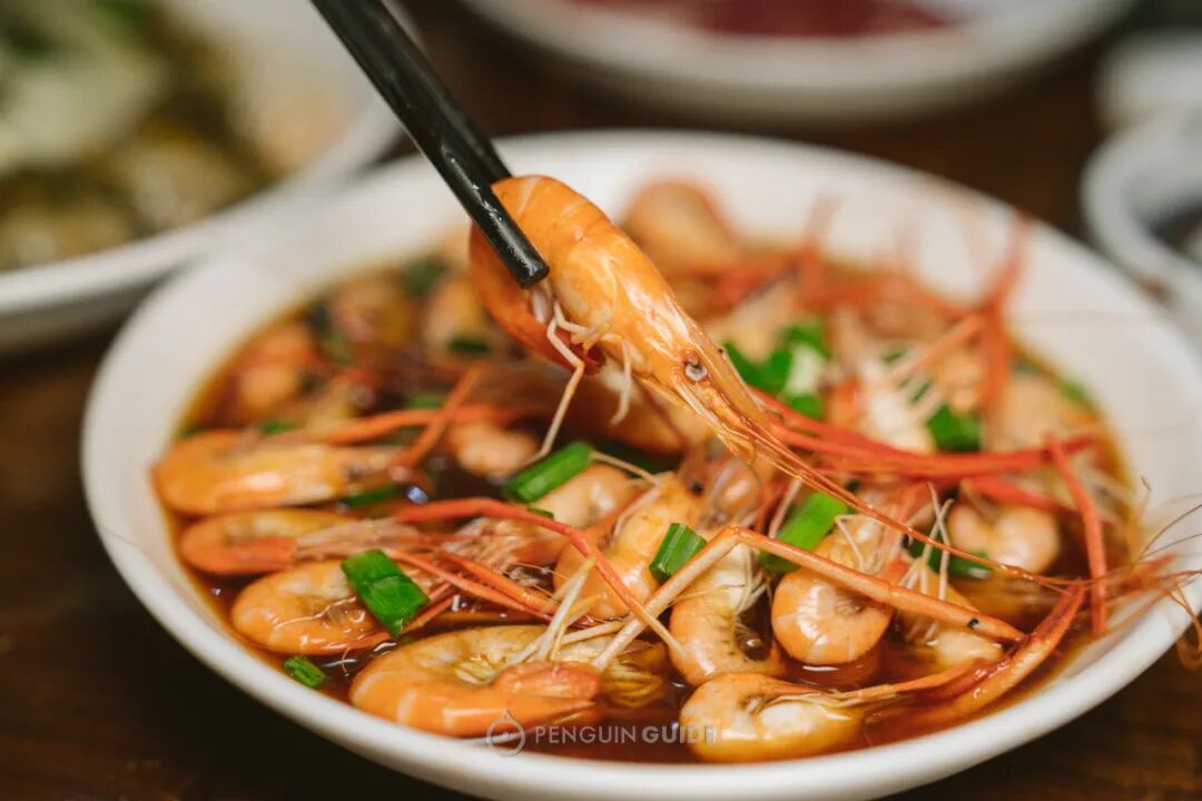 油爆虾,爆到虾壳薄脆,酱和油一起渗进肉里,就好香好过瘾……每一只虾都要吮着吃。