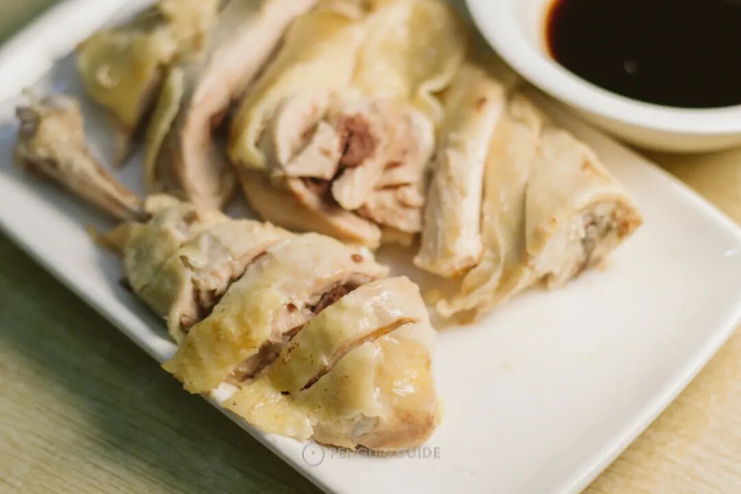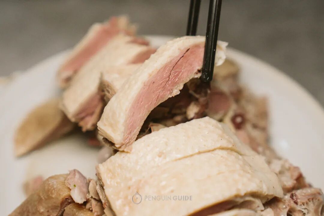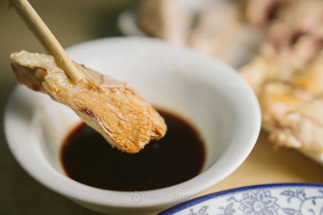 鸡肉细嫩,自带鲜味,再用酱油一蘸,才体会到1+1>2的鲜美。