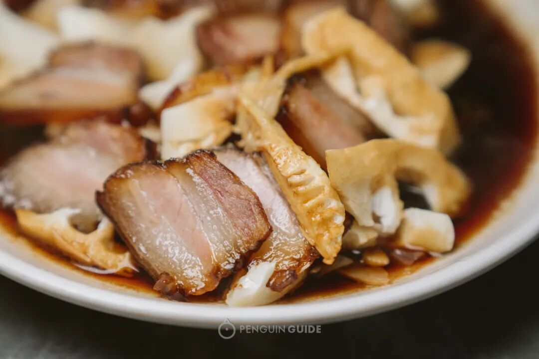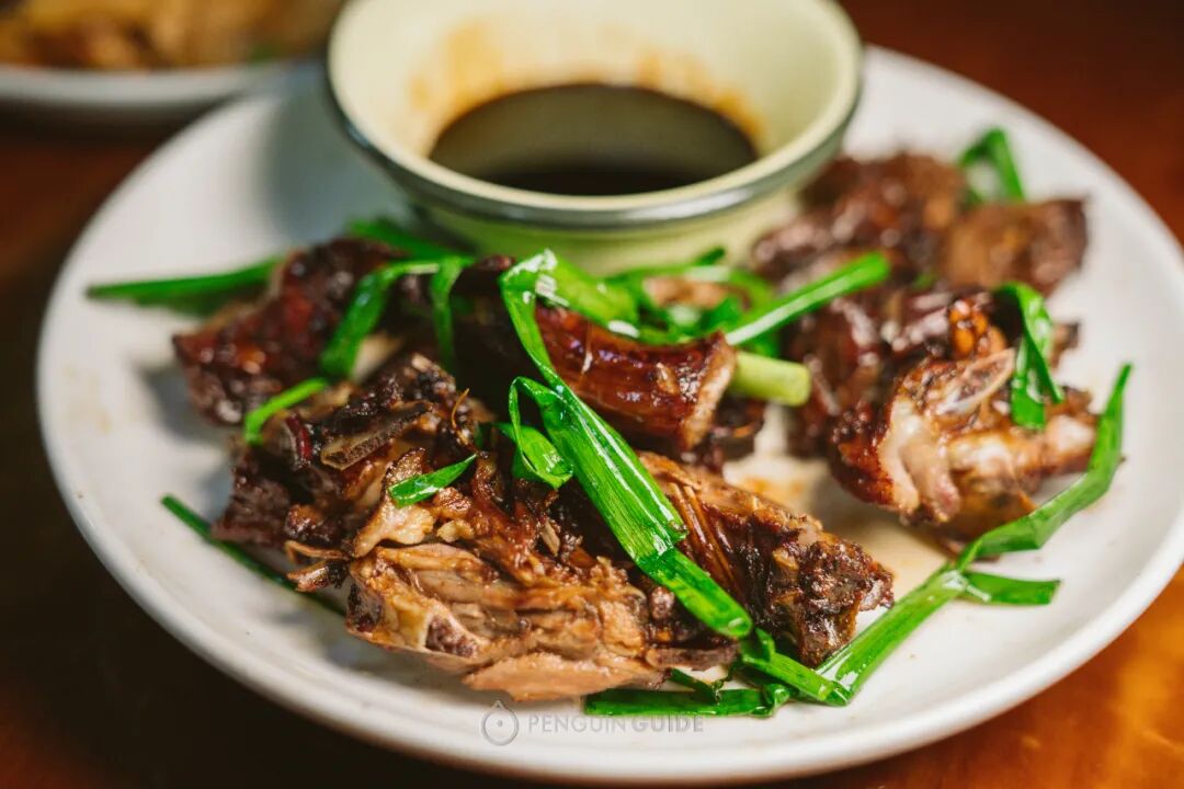 在葱油里炸好,皮肥肉紧。最出彩的是鸭油和酱油调成的料汁,轻轻一蘸,妙笔生花。