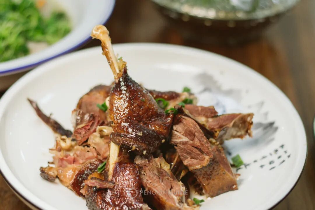 酱鸭皮色油亮!没有上海派那么浓油赤酱,咸中透出一丝甜,鸭骚味几乎没有,干爽有嚼头。