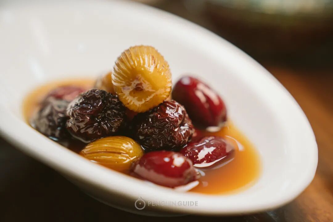 用它浸出三种不同质地的醉枣,有些一抿就化,有的可以咀嚼中慢慢细品,是一道简单又不失细节的甜品。