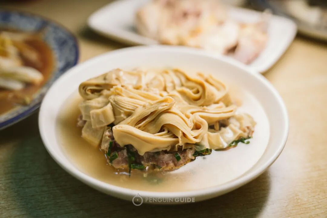 单吃威力太大,绍兴人一般和肉饼一起蒸。闻起来虽臭,但每一片都纤细水滑,还能吃到豆皮淡幽幽的清香。