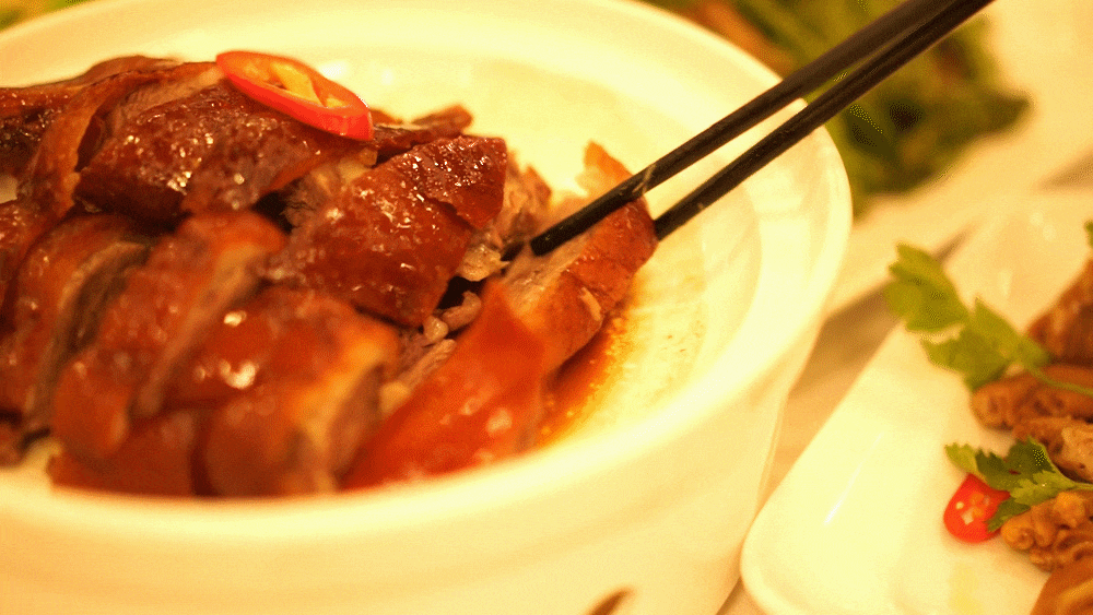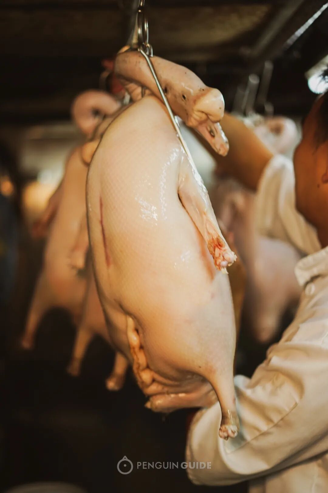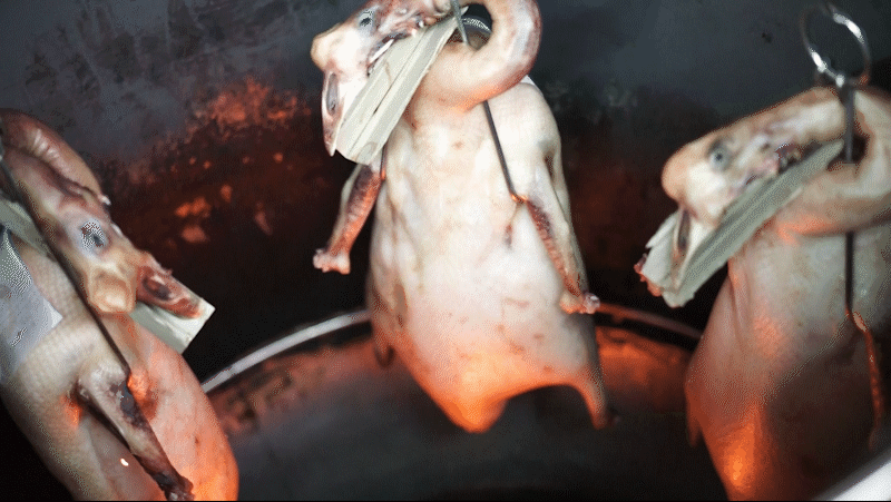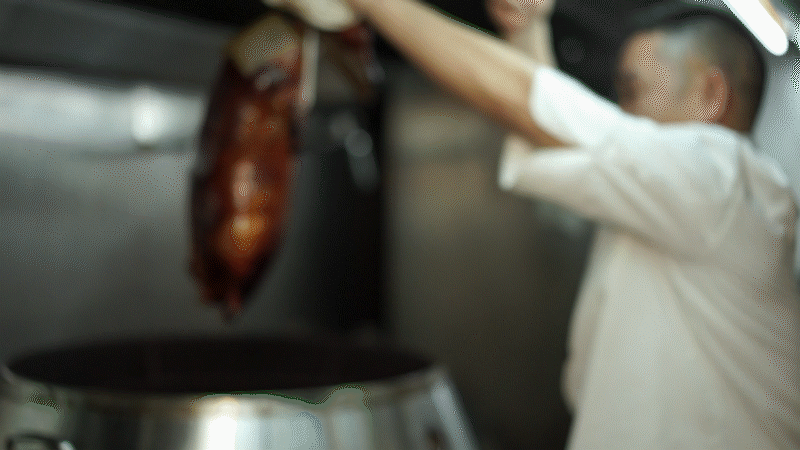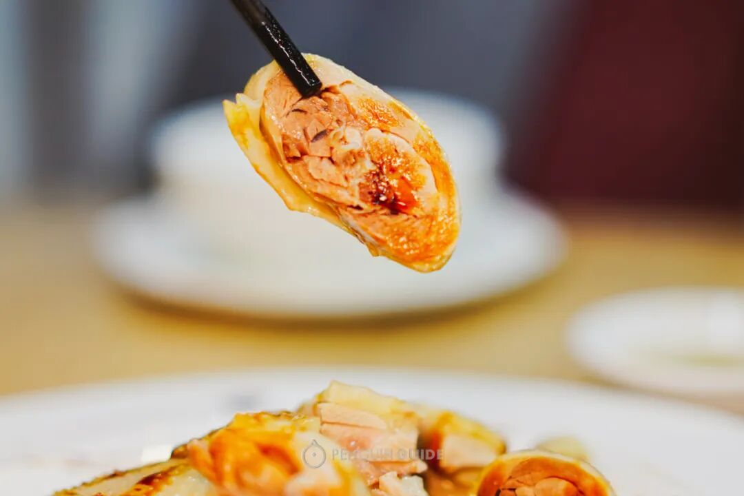 这样的鹅肉才会皮肉俱香,肉质不韧不柴,还有足够的皮下脂肪,在烧制的时候让鹅身变得浑圆饱满。