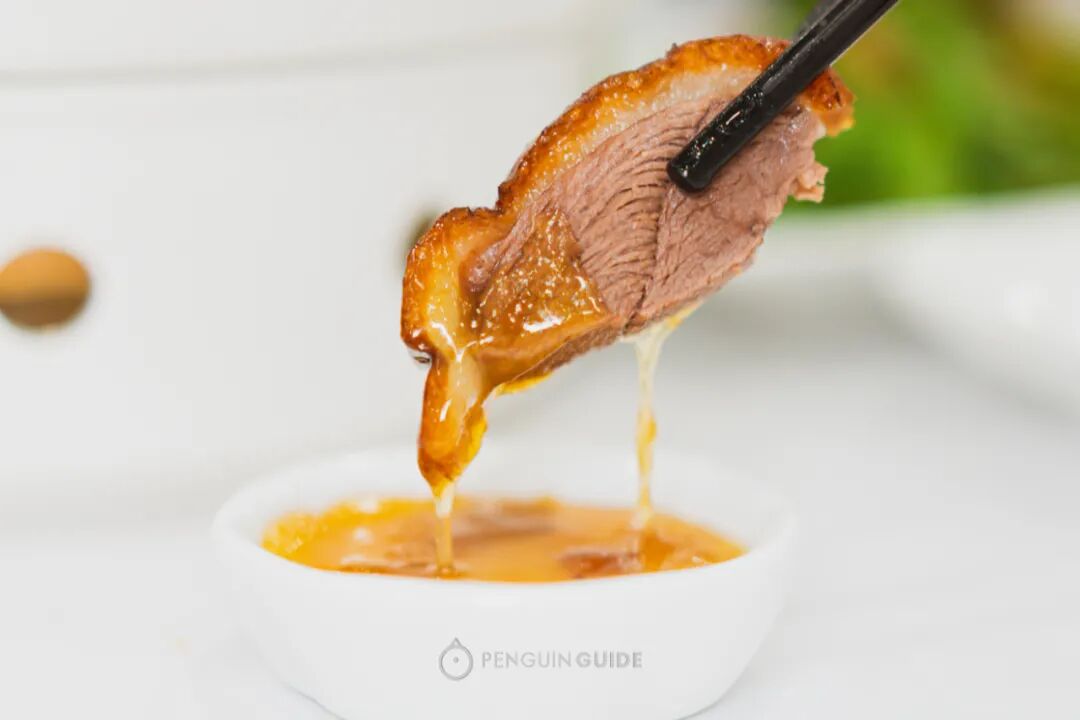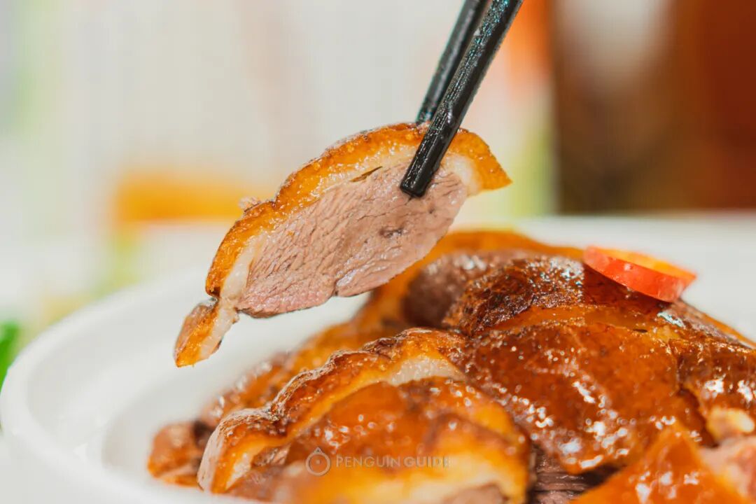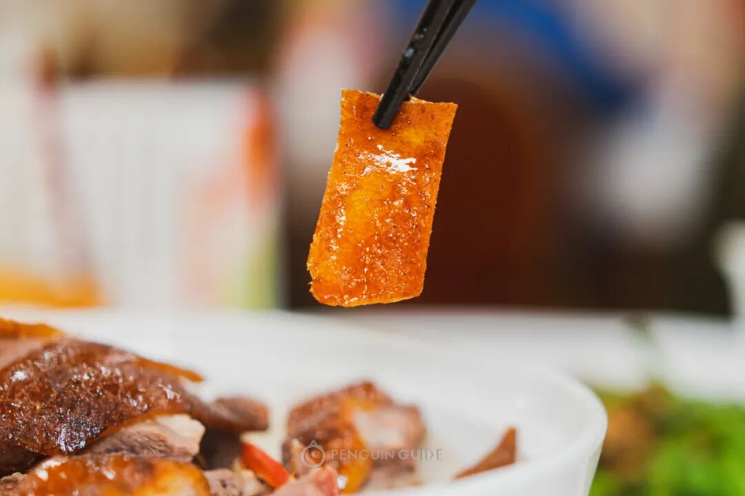 一看就知道,出品比不少烧腊名店要好:枣红晶亮的脆皮,涨鼓鼓的,入口能听到酥脆的撕裂声,瞬间在颅内炸开小烟花!