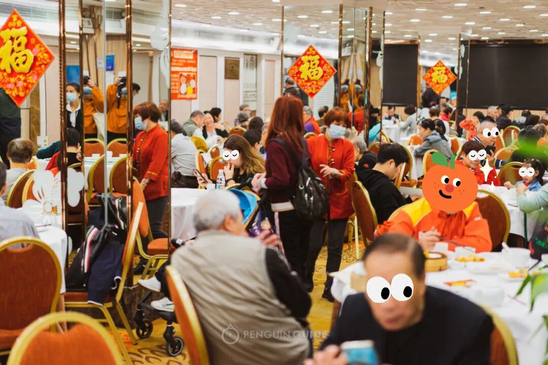 店名是「名荟海韵烧鹅海鲜酒家」(名字是有点拗口),已经开业22年,食客平均年龄更是店龄的两倍。在这保留着上世纪80年代风格的酒楼里坐下,依然感受到许多旧派食肆才有的热络人情。