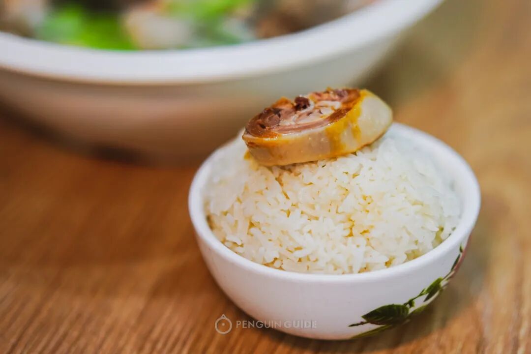 重点是那桶融合了香料、老抽、生抽、日本清酒等味料的白卤水,用清酒代替传统的料酒或花雕,不常见,且非常高明,味道顿时柔和起来。