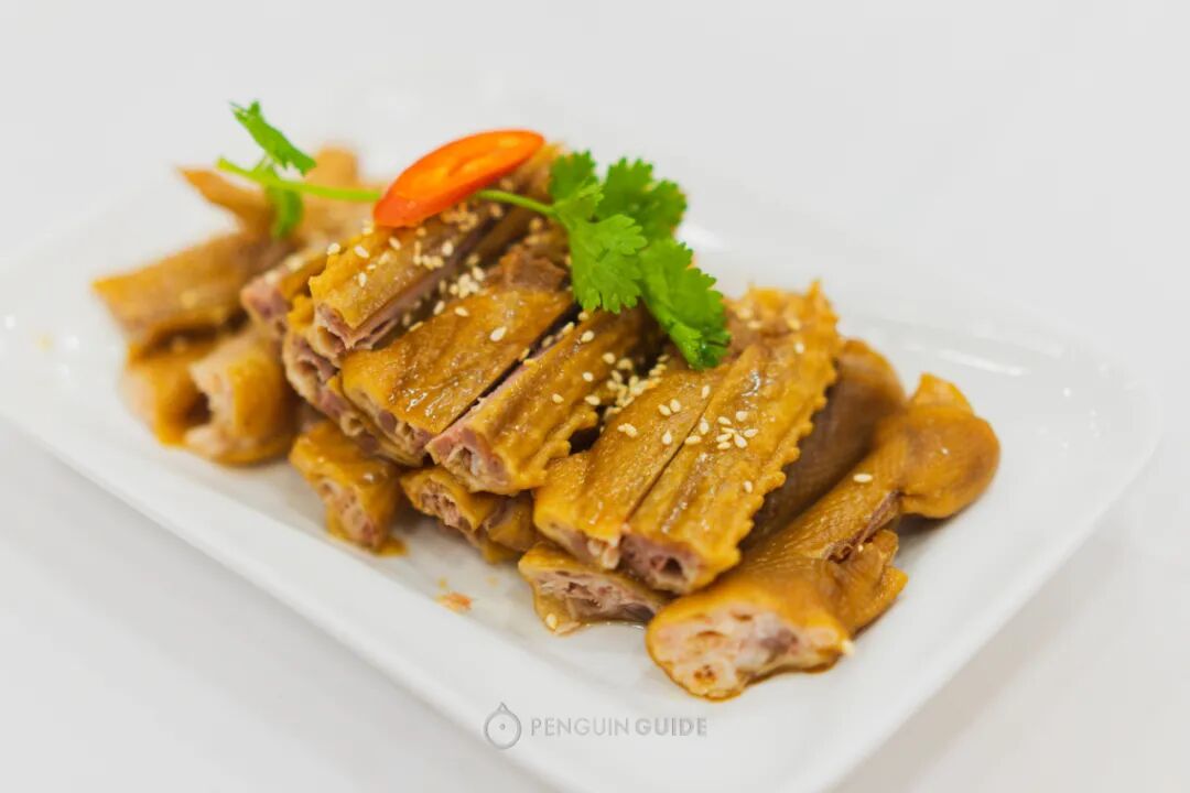 一道风味鹅掌翼,甚至可以和米其林粤菜馆、白天鹅的招牌白卤水鹅掌翼battle一下。只用做烧鹅剩下的新鲜掌翼,外皮脆中带回弹,起步已经甩开那些用冷冻食材的一大截。