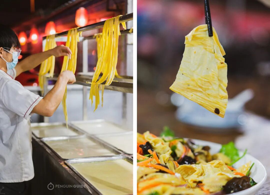 一是现场炊的腐竹,特别新鲜软嫩;还有手工豆腐花,一天只有一桶,来晚就没了。