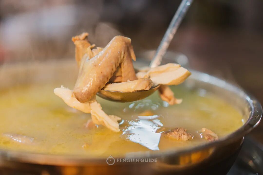 店家只选生长期达180日、毛重约3斤半的清远麻鸡,还要精确到是“下了两次蛋”的母鸡,此时的鸡肉味道更香浓,经鸡汤一浸,香气更积聚于一身。